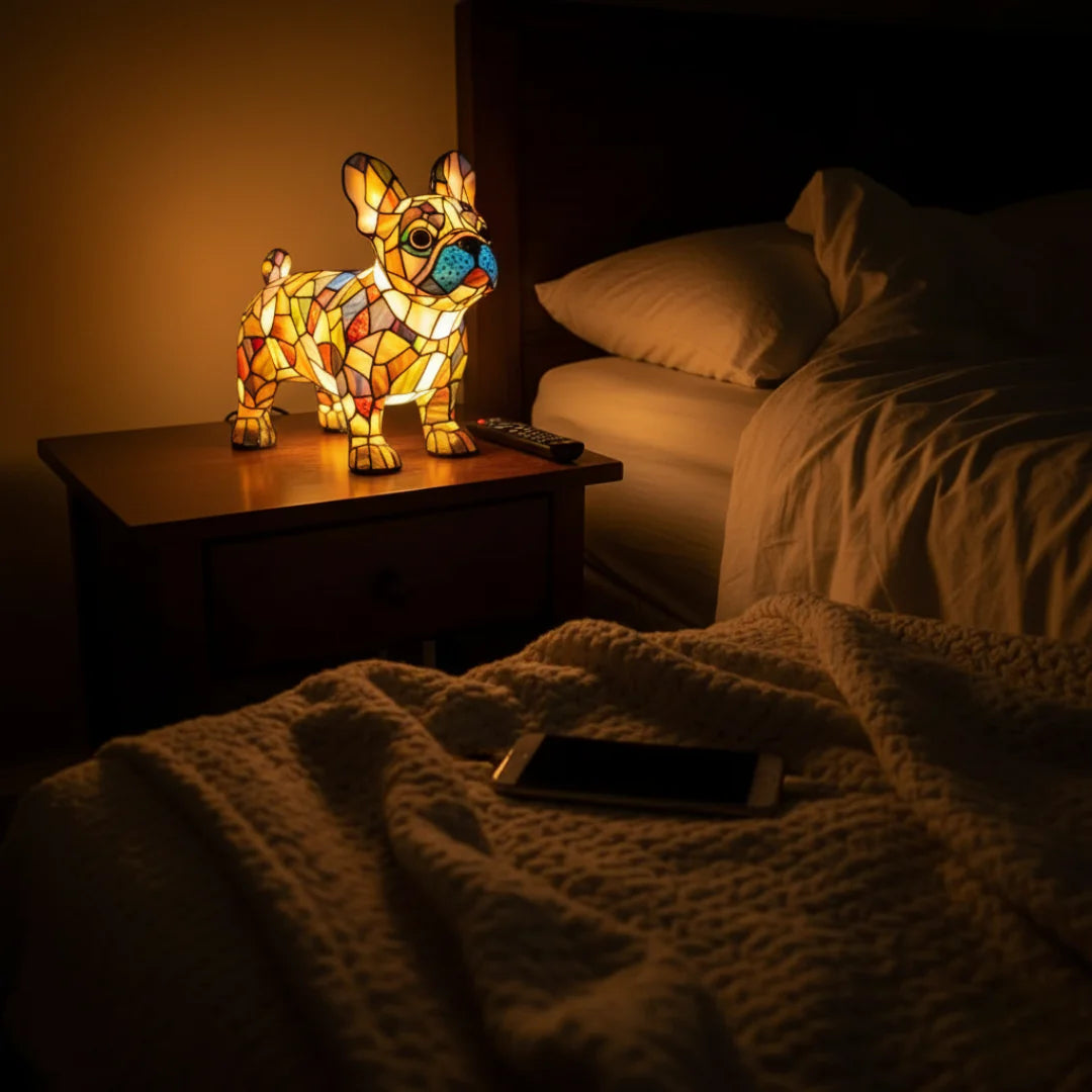 Imagine a corner of your home that transforms as soon as you turn on the lamp colours dance on the walls and a mysterious dog gazes at you with shining eyes. Sam is more than just a lamp. It’s an atmosphere, a conversation piece, a work of art that elevates the entire room with its warm glow and unique character.