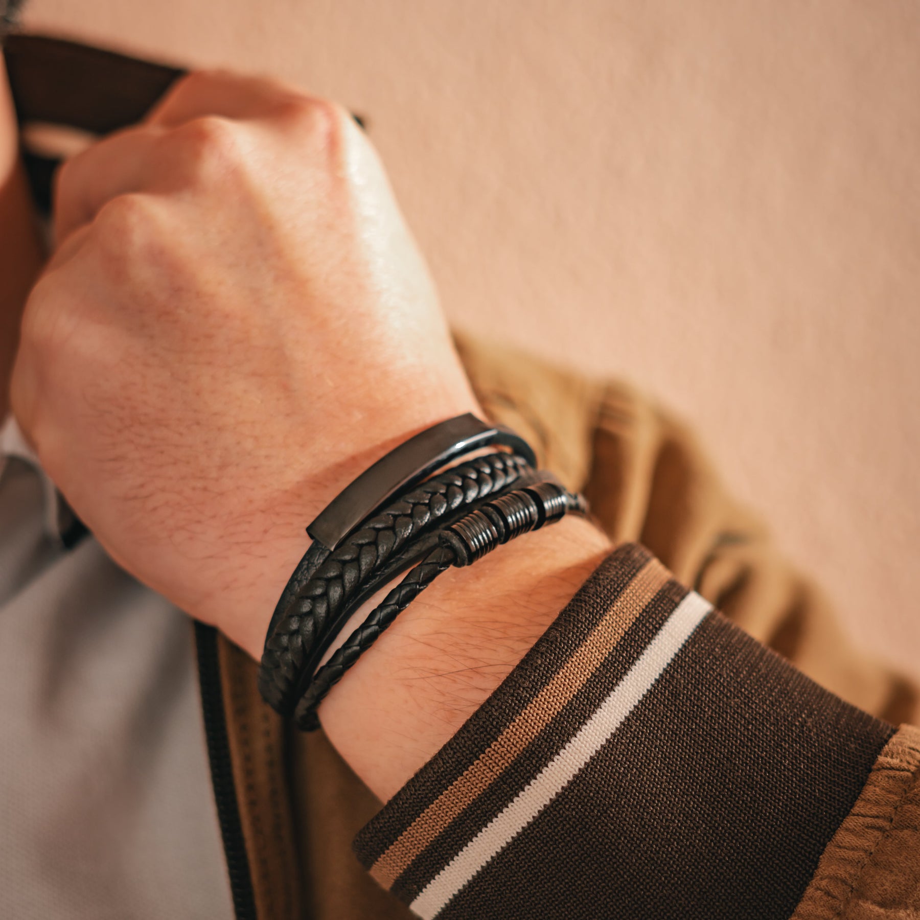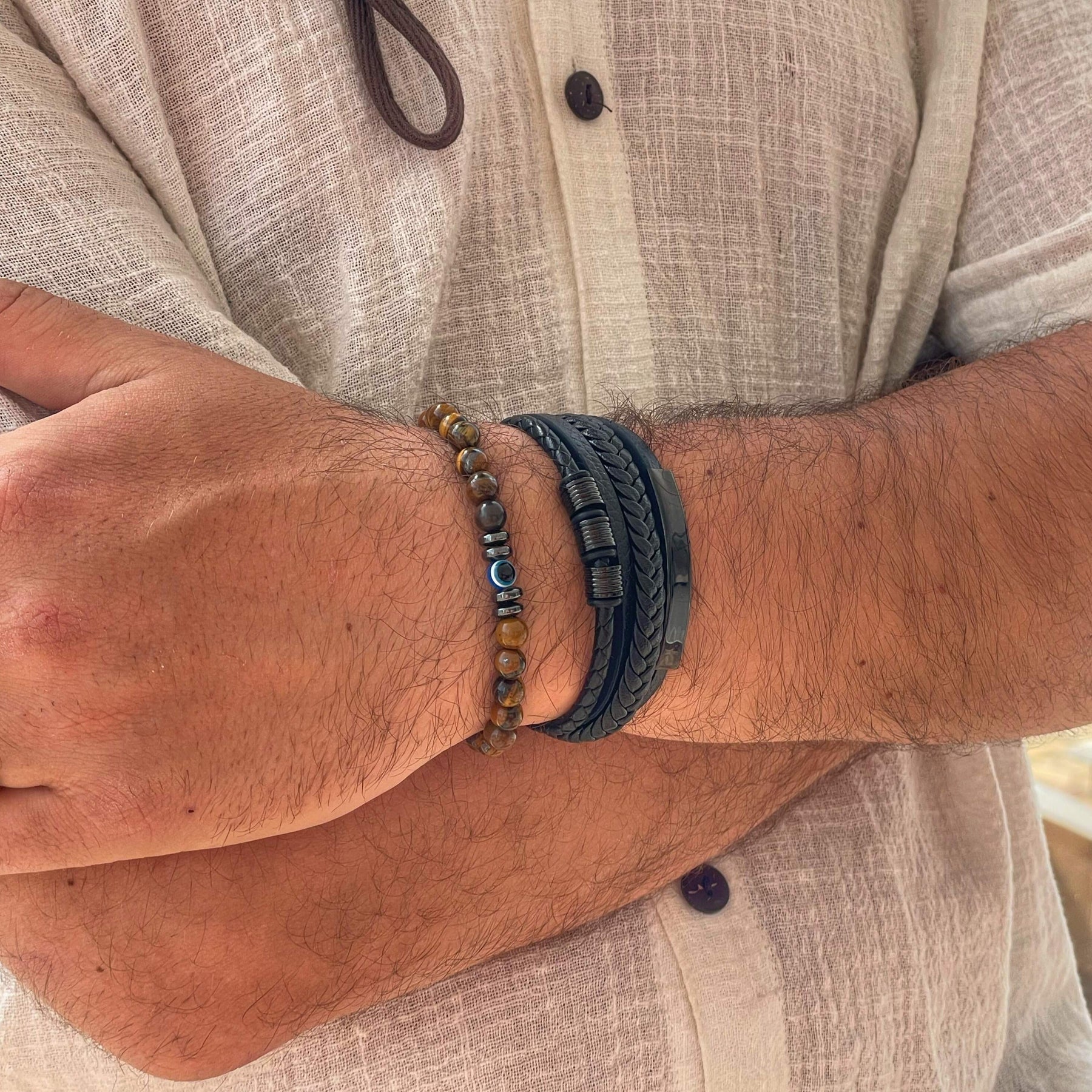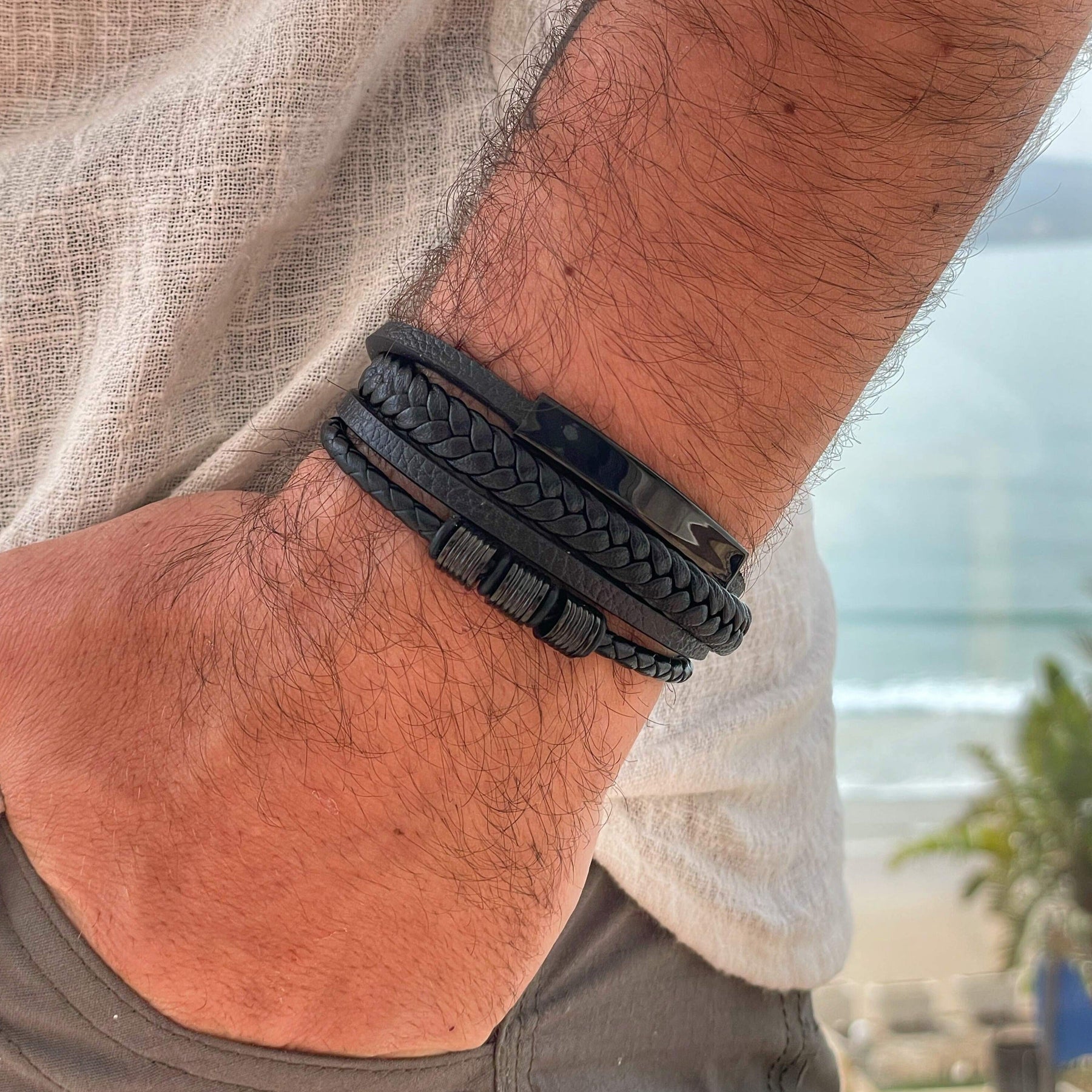 • Made from stainless steel, leather & beads