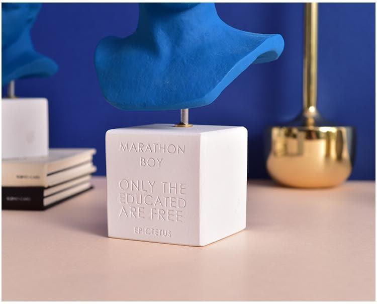Introducing the exquisite Azure David Sculpture, a stunning representation of wisdom and honesty inspired by Roman Mythology. Crafted from high-quality ceramic resin with a matte finish, this sculpture is meticulously handmade to perfection. The striking Klein Blue color of the sculpture beautifully contrasts against the white base and gold metal post, adding a touch of elegance to any space.