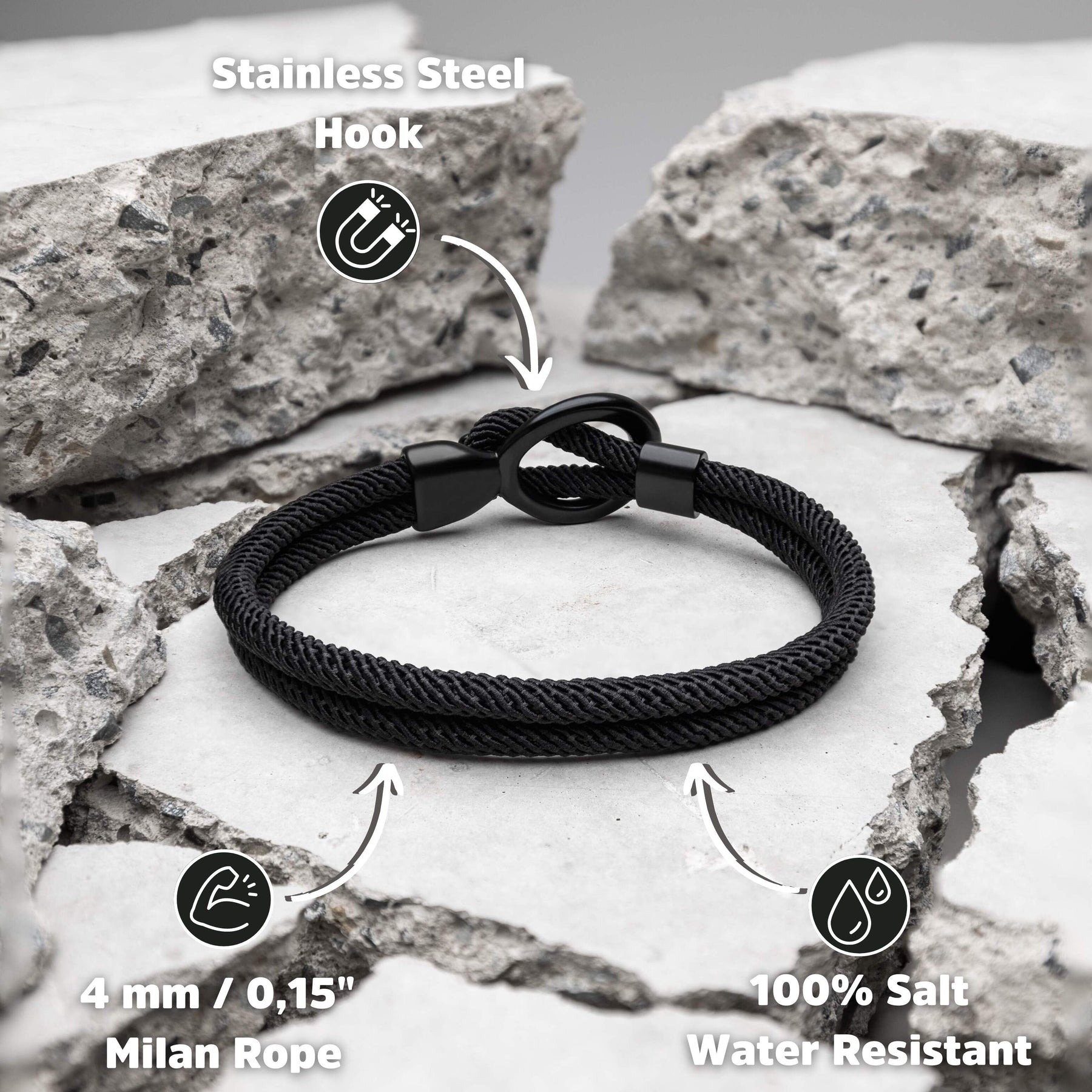 Crafted from 4mm / 0,15" Black Milan Rope.
